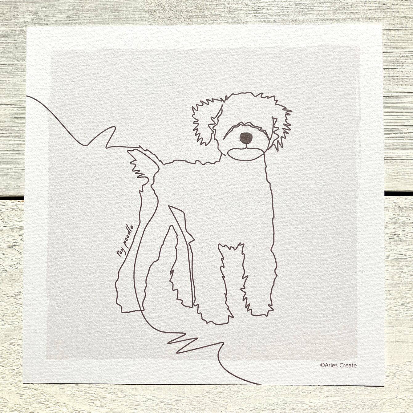 一筆書き イラスト「toy poodle①」べージュ×茶 150×150mm