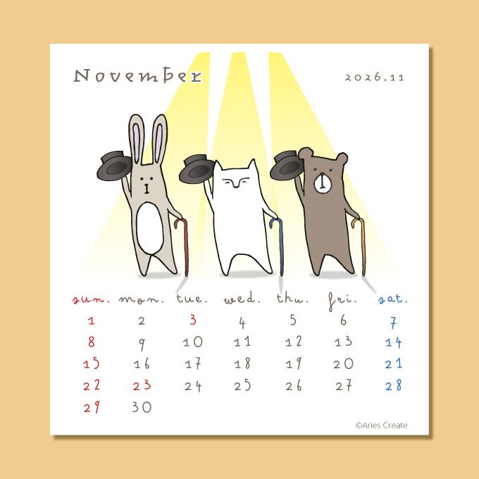 2026 卓上カレンダー しろねことうさぎとくまのカレンダー
